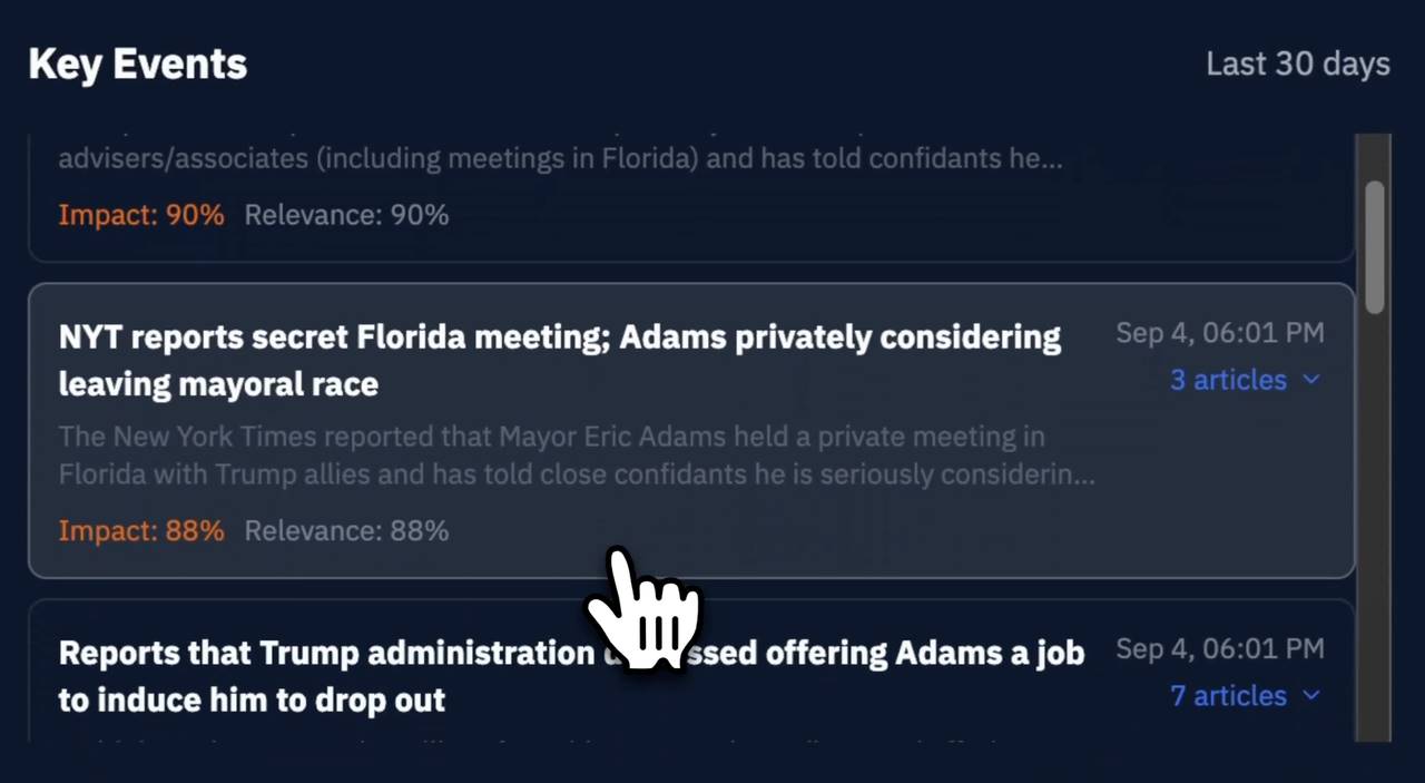 Verso Trading 则构建了更智能的新闻引擎,将重复的新闻标题整合为单一事件,并提供影响力和相关性评分。这让用户看到哪些新闻真正影响了Kalshi 的合约价格,该平台也即将推出低延迟实时预警功能,当新闻或推文可能影响市场时立即通知用户。