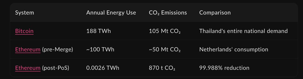 以太坊转向权益证明(Proof-of-Stake)后,能源消耗减少了99.95%,同时仍然保持了安全性: