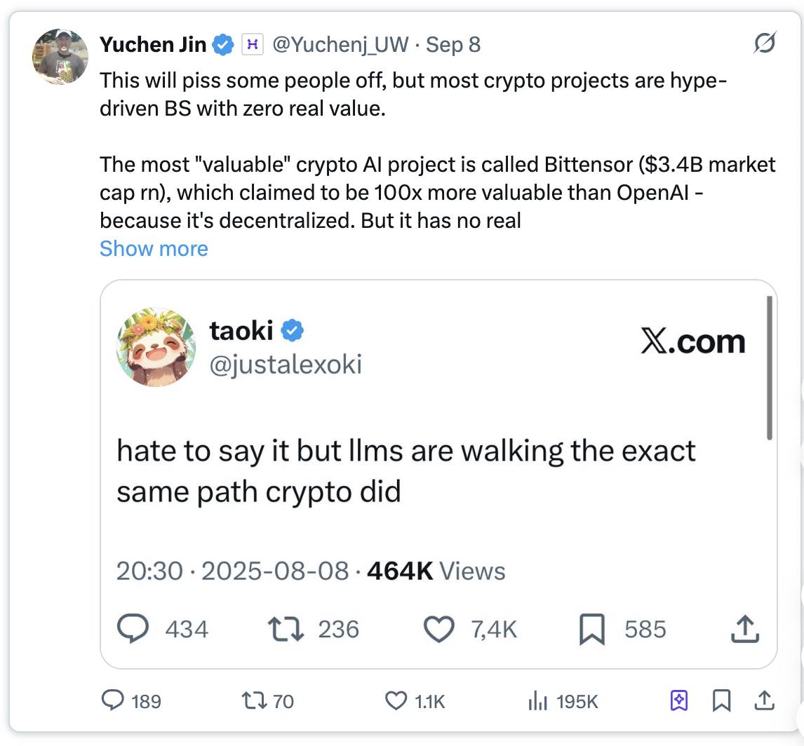 这也是为什么我高度支持加密与 AI 的交叉点。