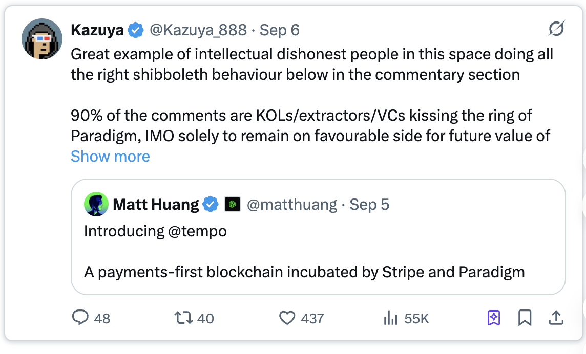 但 @matthuang 也明确表示,以太坊生态系统(包括Layer-2)在应对即将到来的链上支付热潮方面发展速度不够快。因此有必要独立构建 @tempo。