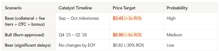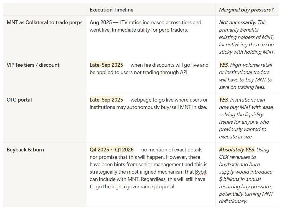 Bybit 整合的关键催化剂包括增强的抵押品使用、VIP 费用等级和潜在的回购与销毁机制,大部分将在 2025 年 9 月底前推出。