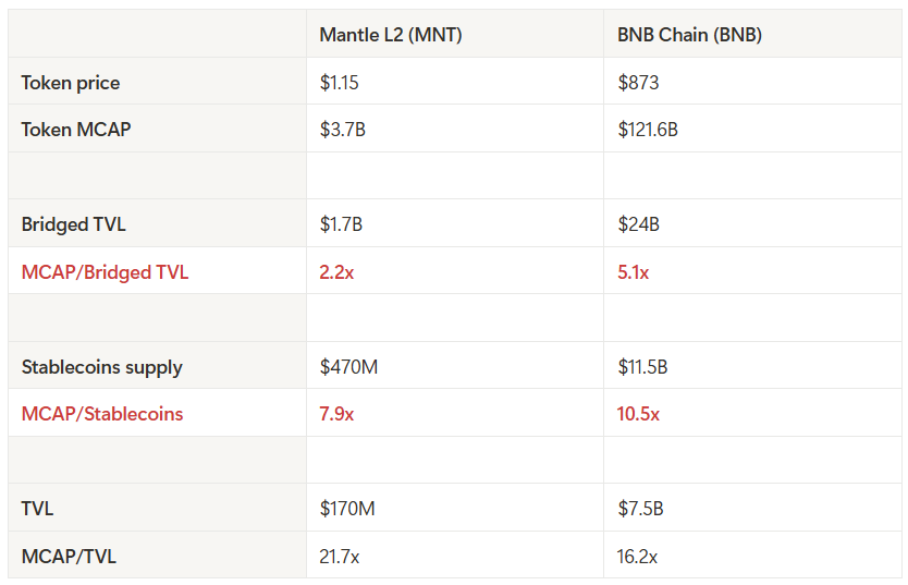多种估值方法突显了 MNT 相对于同类代币的显著低估。