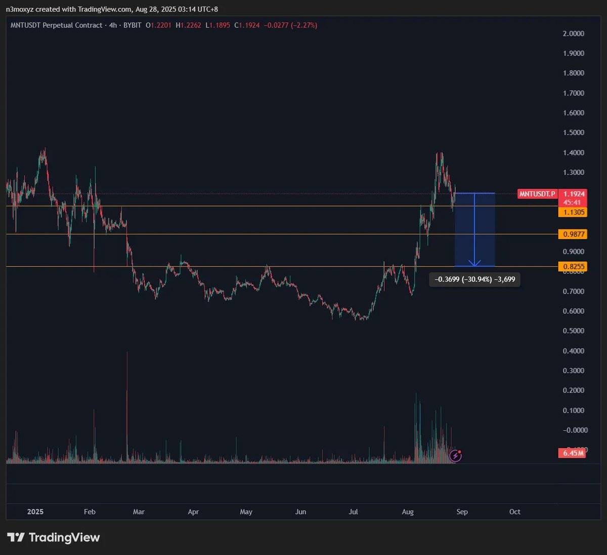 执行风险:回购与销毁尚未获得批准。如果没有这一点,MNT 仍只是一个抵押/费用代币。