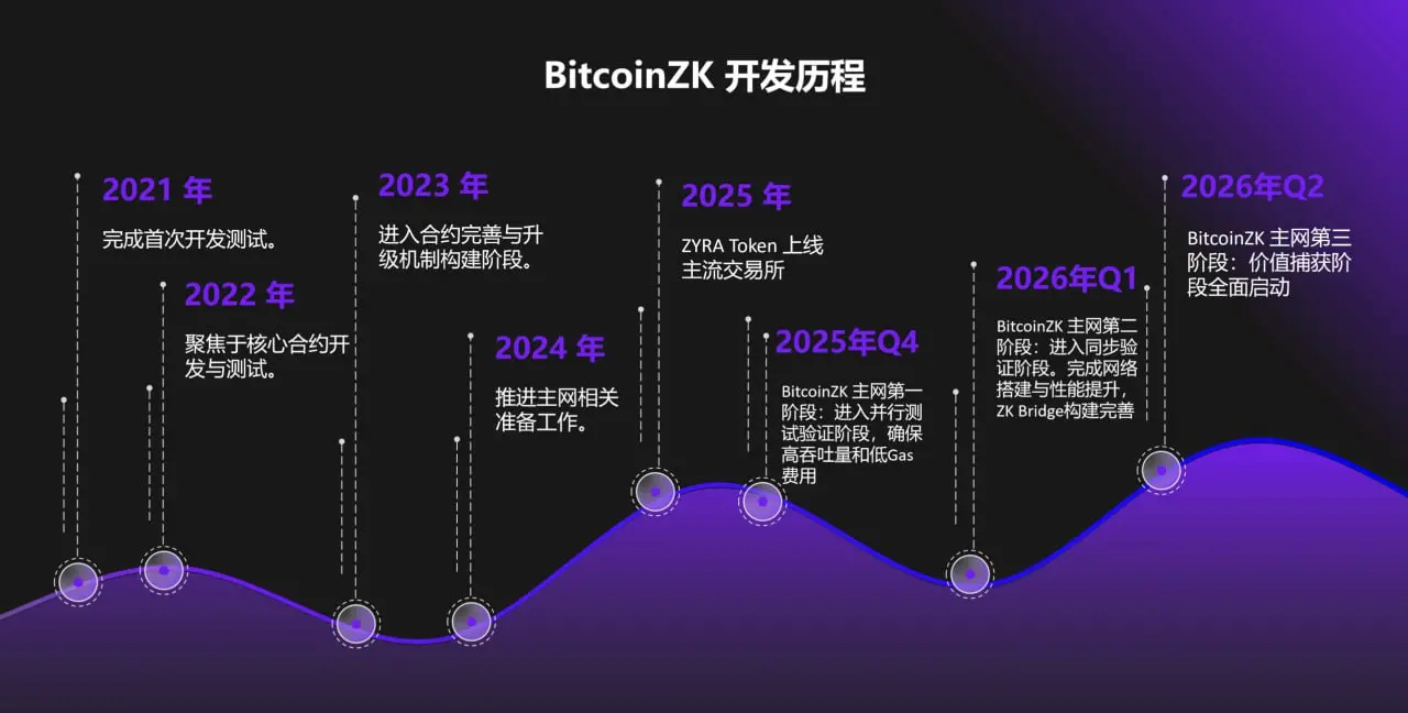 根据路线图,BitcoinZK 主网第一阶段将于2025年启动,ZYRA 代币也将同期登陆主流交易所。