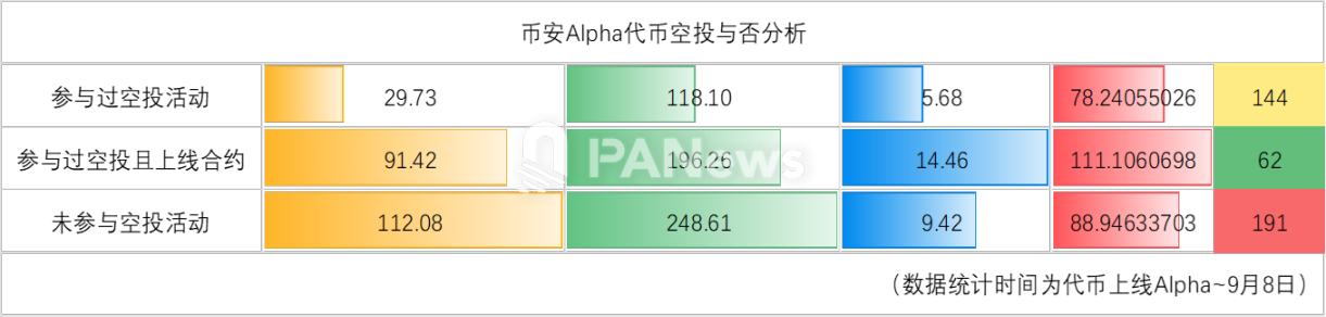 从这个角度来看,上线合约交易与否成为了币安 Alpha 代币最关键的利好要素之一。相反,参与空投对项目本身的市场价格来说,并没有什么推动作用,甚至可能起到副作用。