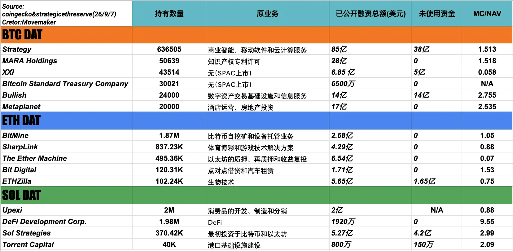 评价非主流DAT的核心方向应该是融资能力和买入能力:
