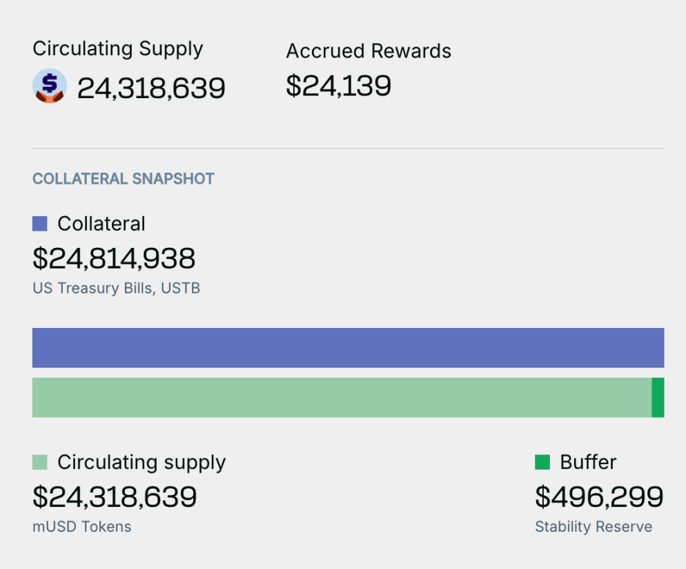 对稳定币来说,储备构成至关重要,虽然 MetaMask 尚未明确指出 mUSD 的储备,但 M0 作为技术支持方,实施链上储备证明机制,允许用户实时验证 mUSD 的发行量与储备资产的对应关系。