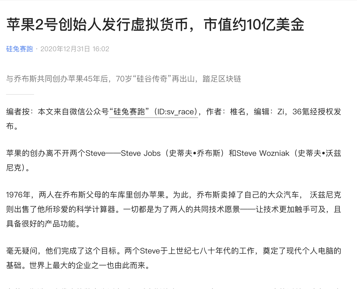 2020 年,苹果公司联合创始人史蒂夫·沃兹尼亚克(Steve Wozniak) 曾受雇于某华人团队,发行加密货币 WOZX,市值一度高达 10 亿美元,如今市值仅为 100 万美元,几乎归零。