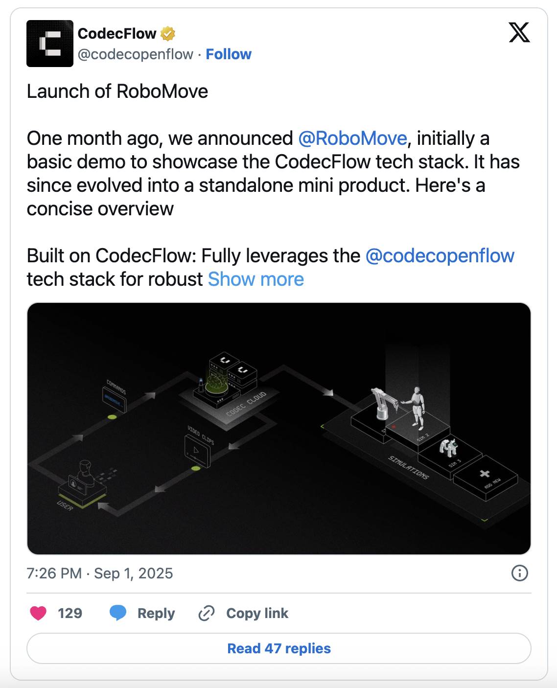 为了展示 CodecFlow 技术栈的有效性,该团队发布了RoboMove,一个能够根据人类输入执行动作的模拟机器人。