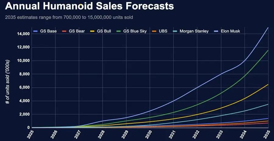 摩根士丹利预测,到 2050 年类人机器人(深潮注:与人类相似并能像人类一样行动的机器人)数量可能达到近 10 亿,以及埃隆·马斯克表示到 2040 年类人机器人数量将超过人类,关于未来几十年世界如何运作的讨论既令人兴奋又让人感到真实的担忧。