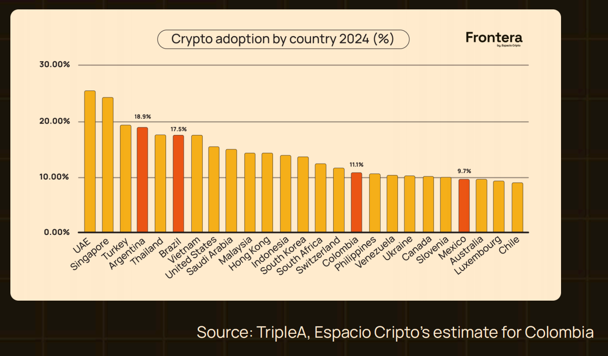 四国对比显示,拉美加密生态呈现差异化格局: