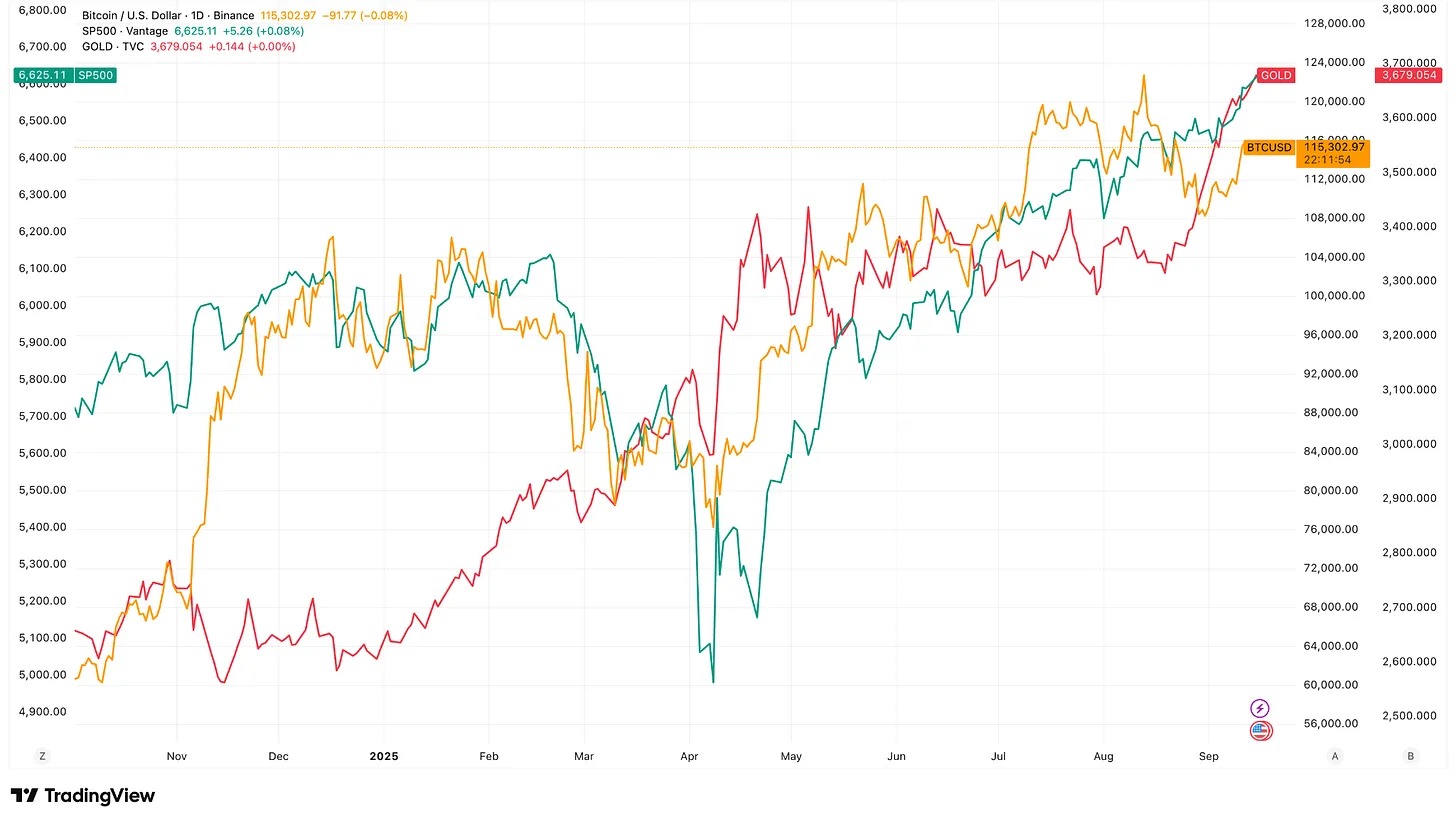 比特币从 8 月底接近 108,000 美元的低点回升至上周 116,000 美元以上。然而,与黄金或股票不同,比特币未能突破这一关口。缺口已被填补,上涨势头正在增强,但 117,000 美元的阻力位依然顽固。