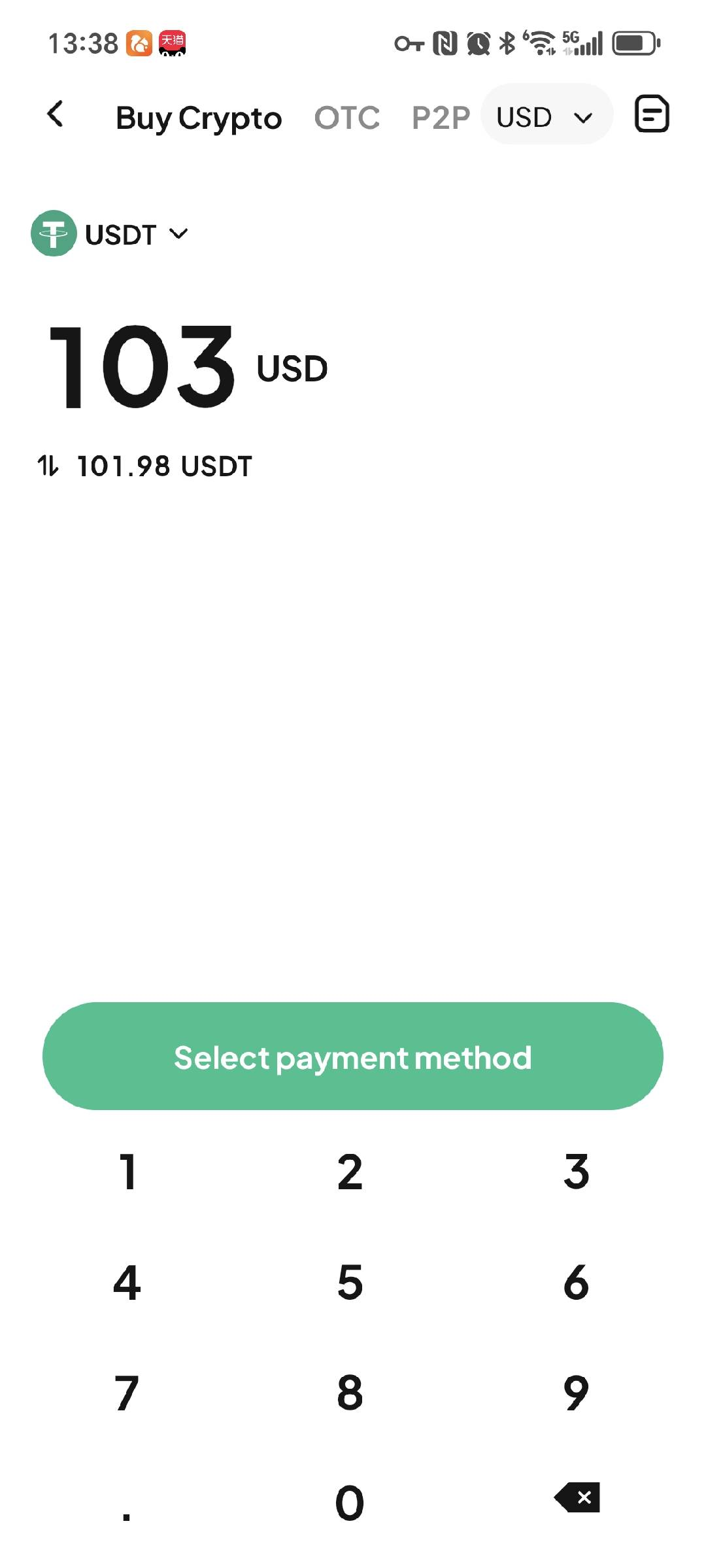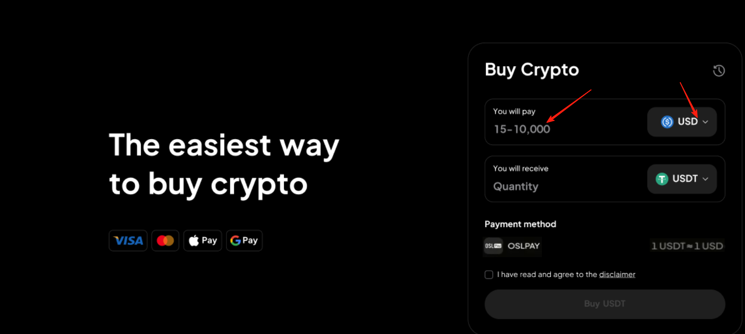 第一步:进入快捷买币页面,填入金额并进入支付方式选择