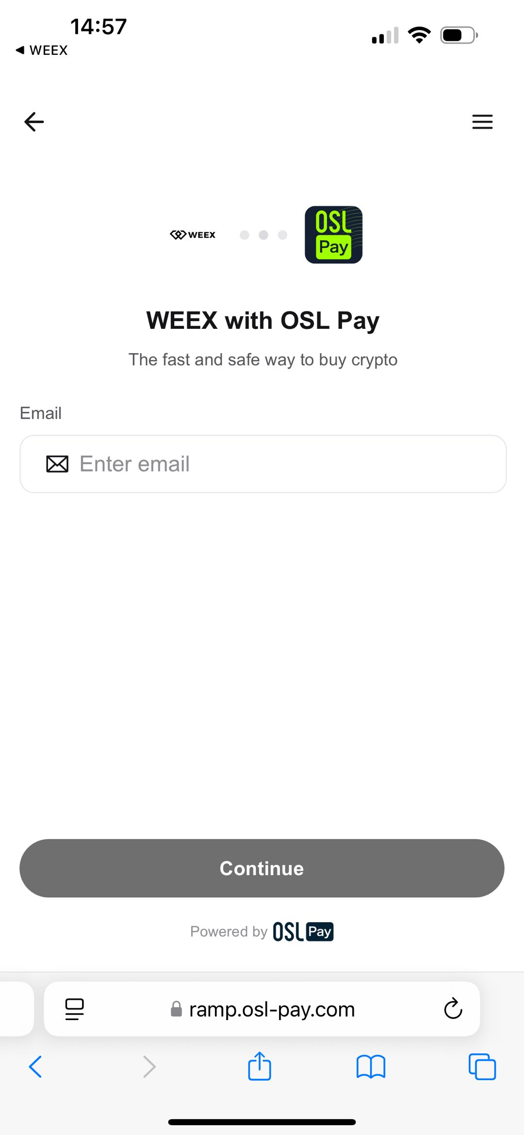第二步:跳转到OSL PAY登录OSL账号并获取验证码后继续