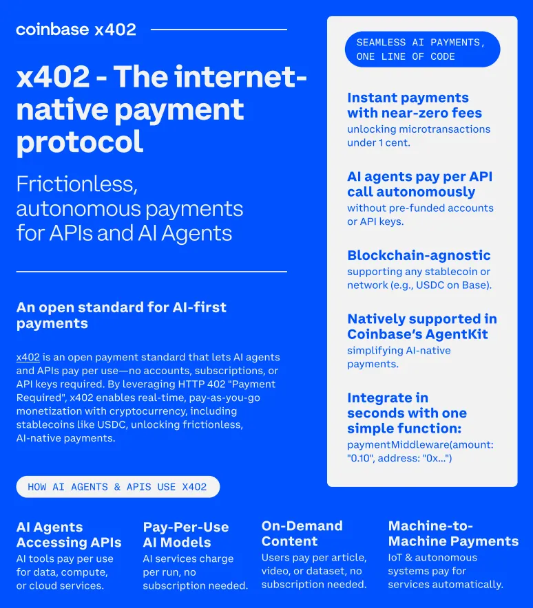 Coinbase 携以太坊社区推动 x402,让 API 调用即支付成为现实 — — 稳定币原生、A2A(Agent-to-Agent)直连。