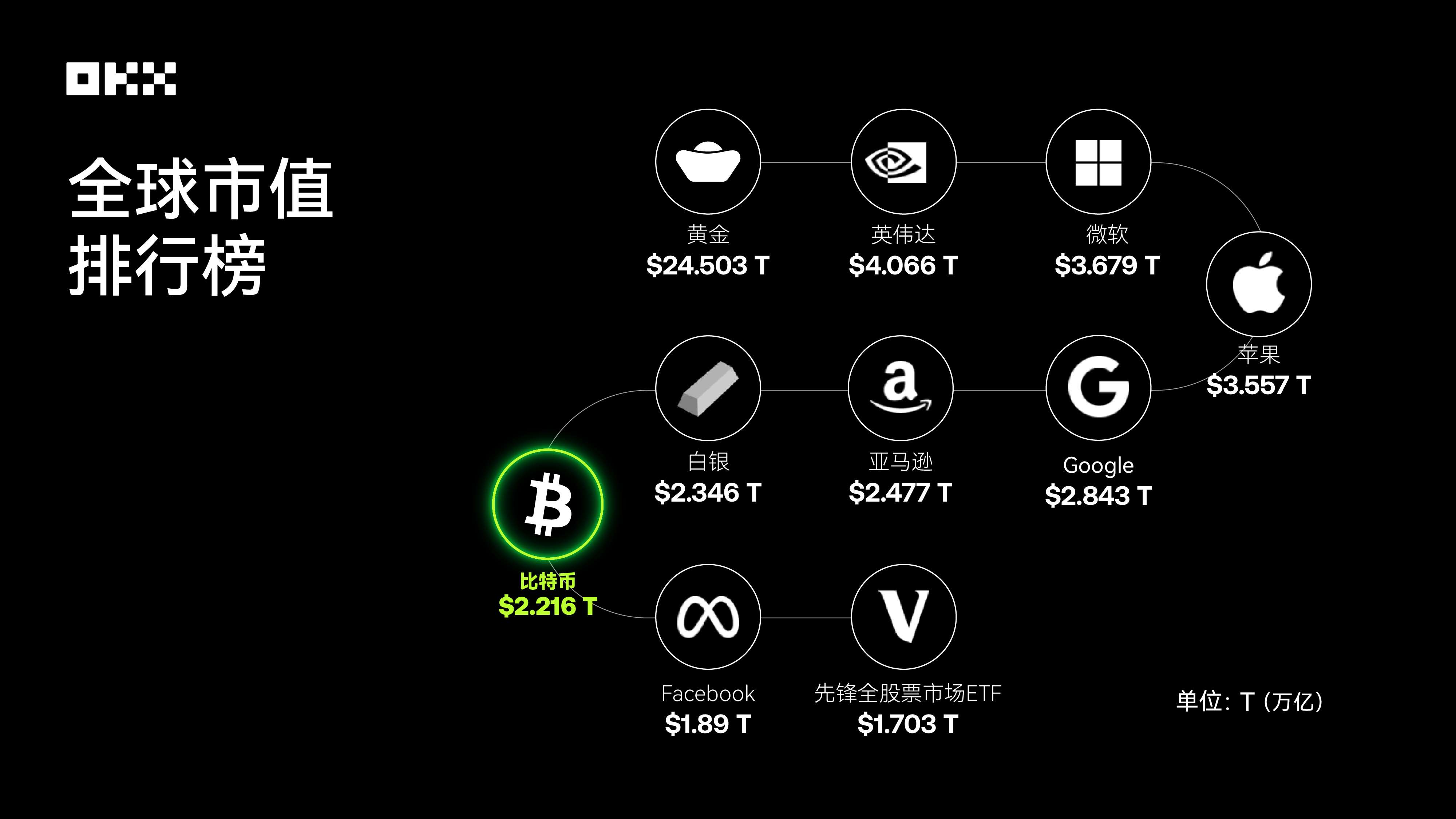 数据来源:8MarketCap;截至2025年8月底全球主要资产市值排名,比特币已跻身前列