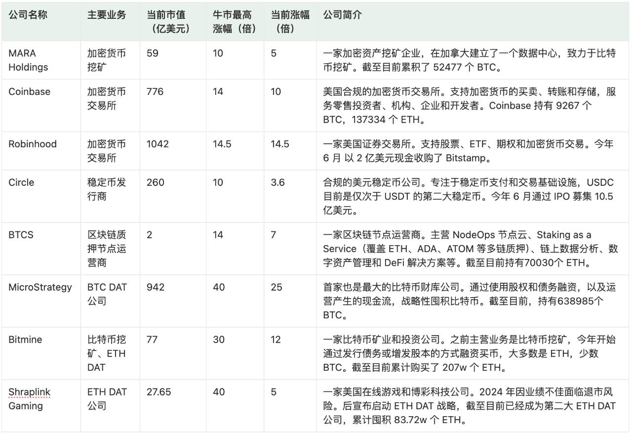 1、押重注才能获得估值重估。持有 BTC 的上市公司有 189 家,但持仓价值达到其股票市值 70% 的仅30 家,持有 BTC 数量超过 1 万枚的只有 12 家——这12 家涨幅相当可观。ETH DAT上市公司也呈现类似的规律。浅尝辄止的 DAT 战略,只能引发股价的短期波动,无法实质性提振股票市值和流动性。