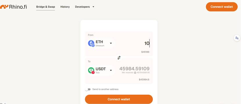针对用户资产跨链需求,Rhino.fi打造了Bridge&Swap功能—— 兼具跨链与交易属性,相当于“跨链版DEX”,可直接将A链的b资产兑换为C链的d目标资产。例如,能将以太坊链上的ETH,一键跨链兑换为波场TRON链上的USDT,大幅简化跨链与交易流程。