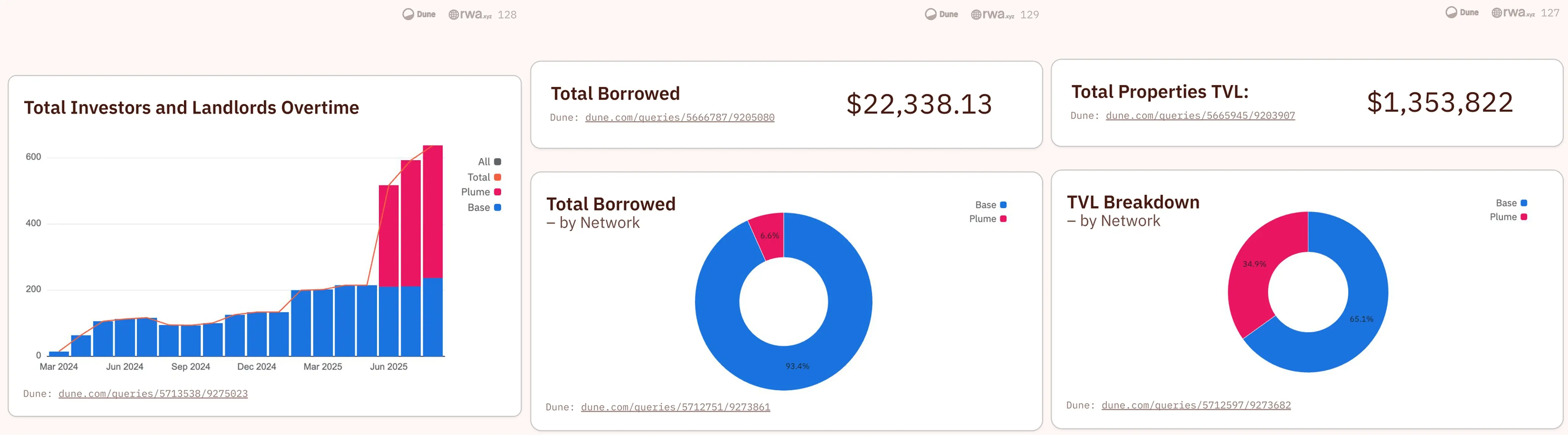 现金流与借贷:平均租金收益 ~6.9%、累计派息 ~$15K ;已在 Base/Plume 借贷池抵押并借出 ~$22K 。