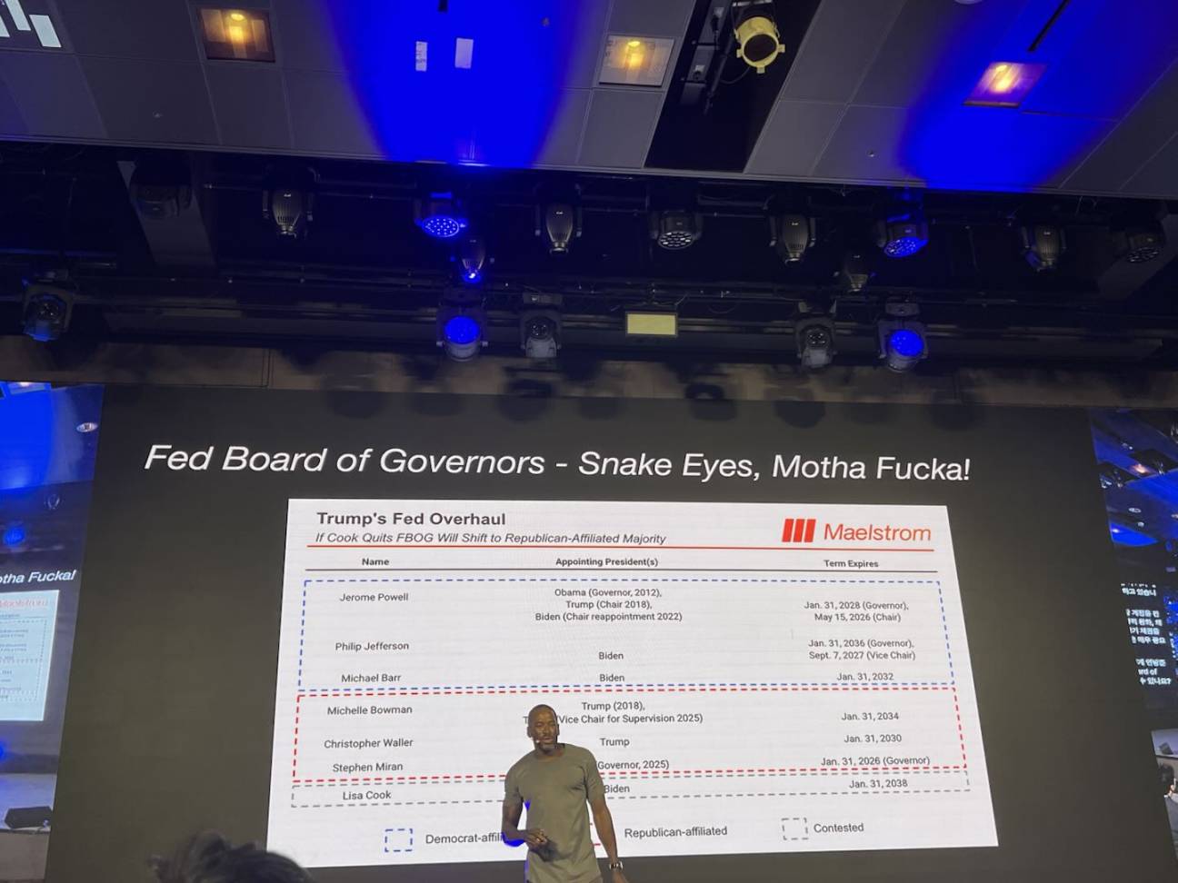 这就是为什么我非常有信心,四年周期在这个特定的周期中并不适用。我们正处于一场「军事宗教」的重新调整之中,如果他们能够掌控所有货币政策的领导权,并相信他们非常有动力,这就是将要发生的事情。谢谢大家。