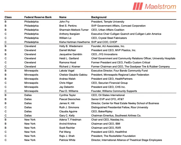 明年二月所有行长将面临改选。除纽约外,具有投票权的辖区包括: