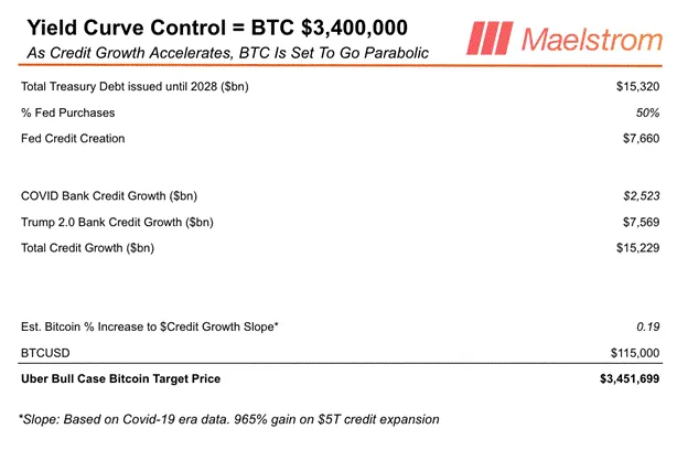 切勿怀疑特朗普团队将不择手段印钞以满足美国转型所需资金。我想进行一个实验:推算美联储与商业银行体系到2028年将创造的信贷规模。