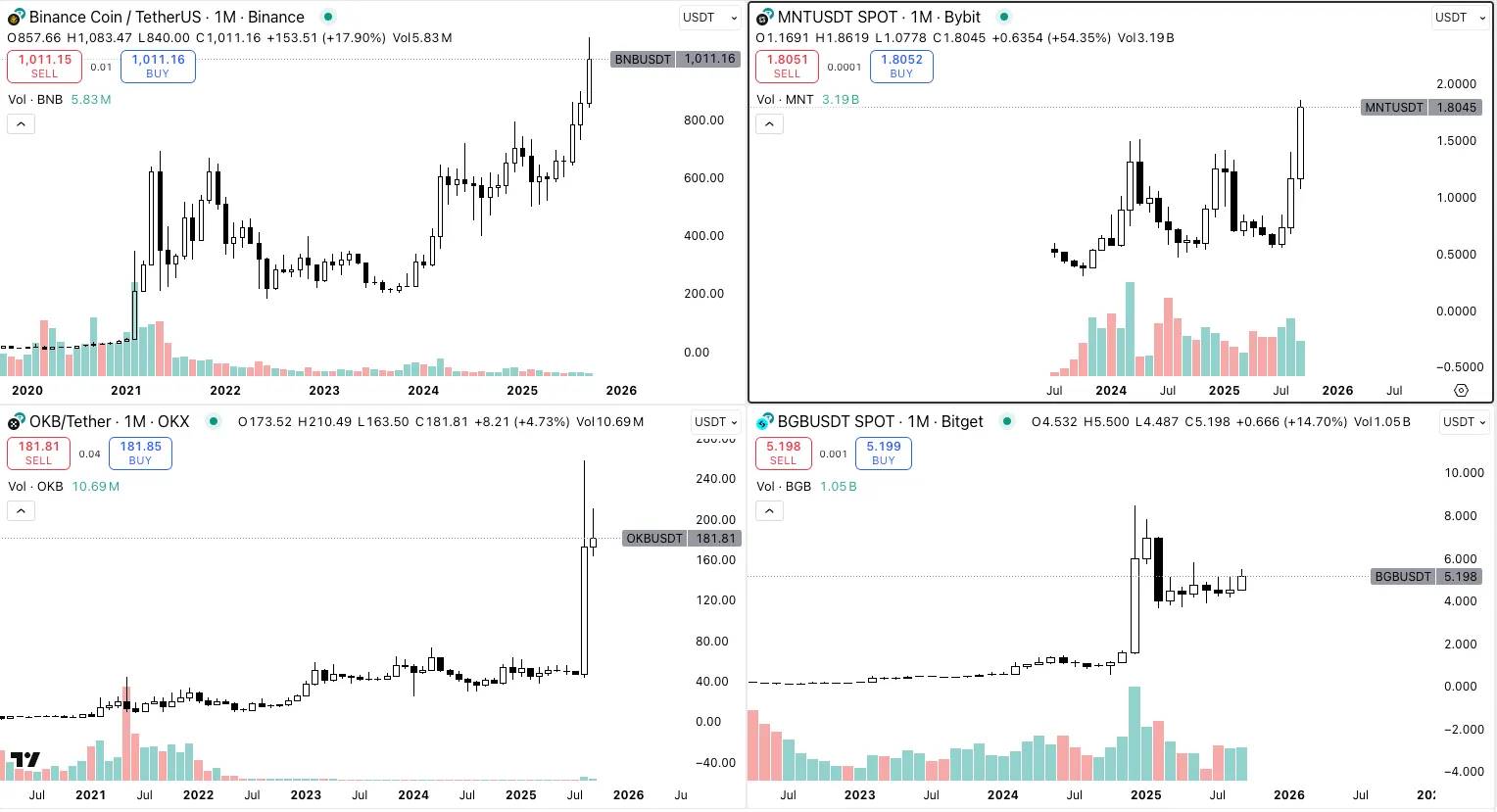 当前可能是在交易所代币周期的后期进入市场。BNB、OKB 和其他同行已经在 2024–2025 年期间实现了显著的增长,这可能限制了后期进入者的上行空间。