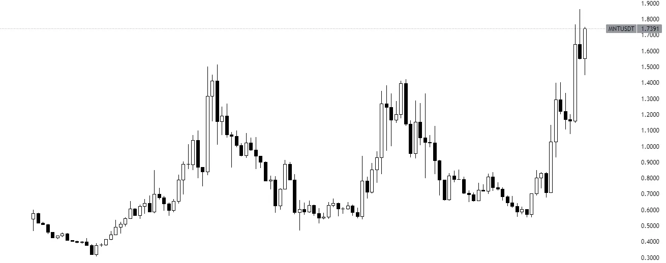 让我们来谈谈一个显而易见的话题:四年来,MNT 在亚洲加密货币圈一直是颇具争议的交易。图表说明了一切——基于对 Bybit 整合的猜测,MNT 多次尝试突破,但最终都以失败告终。