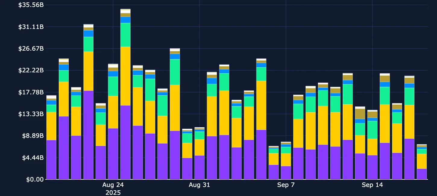交易量与估值之间存在脱节。自 8 月 1日 以来,BNB 的增幅是 MNT 35亿美元增幅的 10 倍。然而,关键在于:Bybit的现货和衍生品交易量始终占币安交易量的三分之一左右。