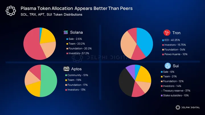 对于 L1 代币而言,代币分配至关重要。虽然这只是治理代币的一个讨论点,但 L1 代币需要考虑公共利益、去中心化基础设施和商品价值等因素。激进或掠夺式的代币分配将贯穿区块链生态系统的整个生命周期。从这一点来看,XPL 的整体代币分配相对于其他 L1 代币而言非常健康。