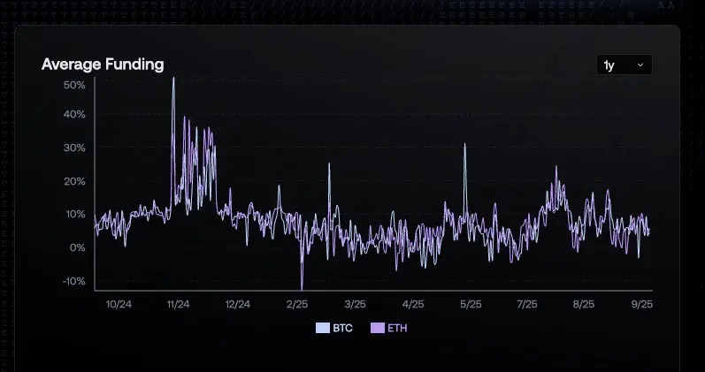 所以让我们来考虑一个问题,为什么在Binance资金费率为负时,Hyperliquid的资金费率仍较高,原因就在于两者深度不同,也就是说此时Hyper liquid中卖单深度不强,造成了冲击价格高于价格指数,所以最终的溢价指数仍然较大。这也符合两者市场阶段。因此我们可以得出结论,这个利率形态应该会保持一段时间,而非瞬时状态。