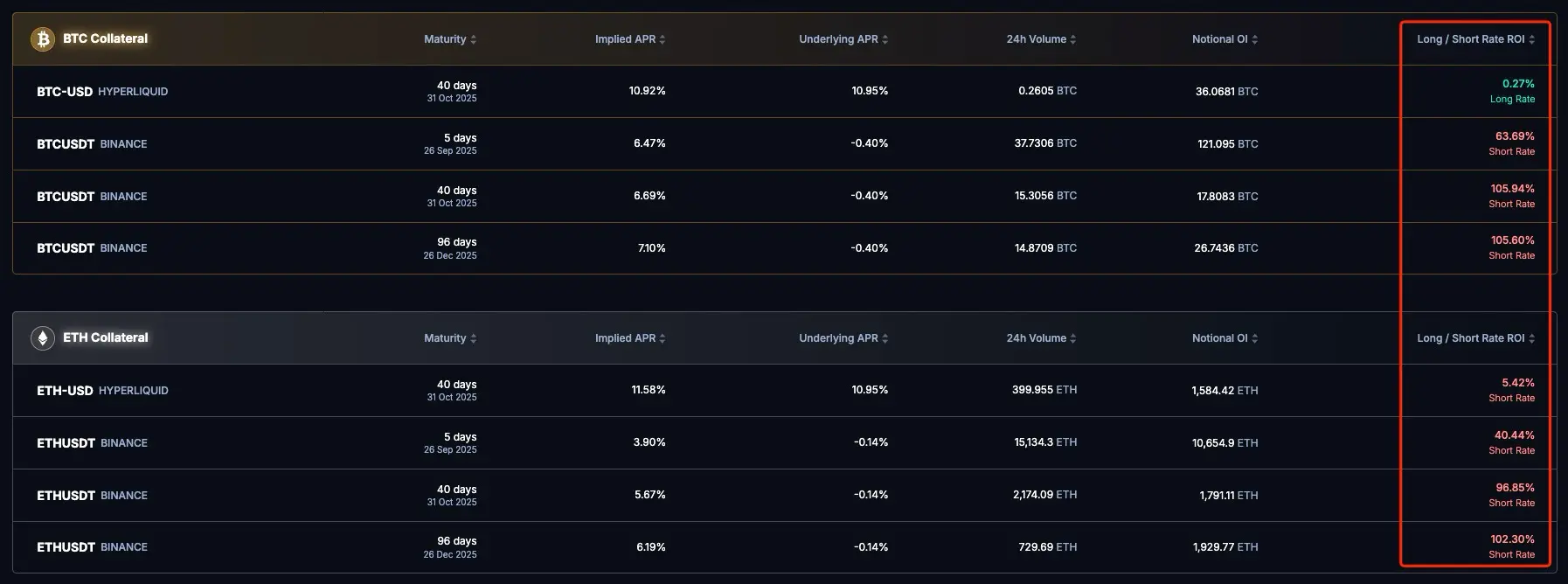 Boros首页中的100%的Long / Short Rate ROI是怎么来的
