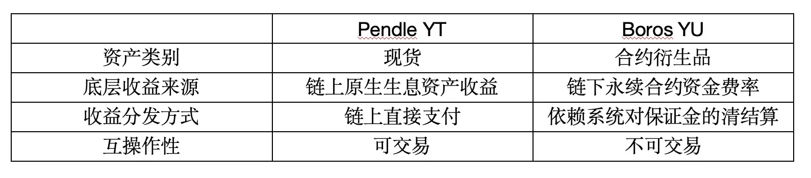 那么具体是如何实现这一点的,让我们来看下Boros的基本原理。Boros设计了一种新的资产标的,叫做YU。它与Pendle中的YT资产原理是类似的,不同点主要在于YT类似一种原生的加密资产现货,因为收益的结算是链上进行的,因此可以直接通过智能合约自动结算,而YU则是一种合约衍生品,因为收益锚定链下场景,因此依赖于对合约交易双方的保证金帐户的结算,实现对链下收益的跟随。