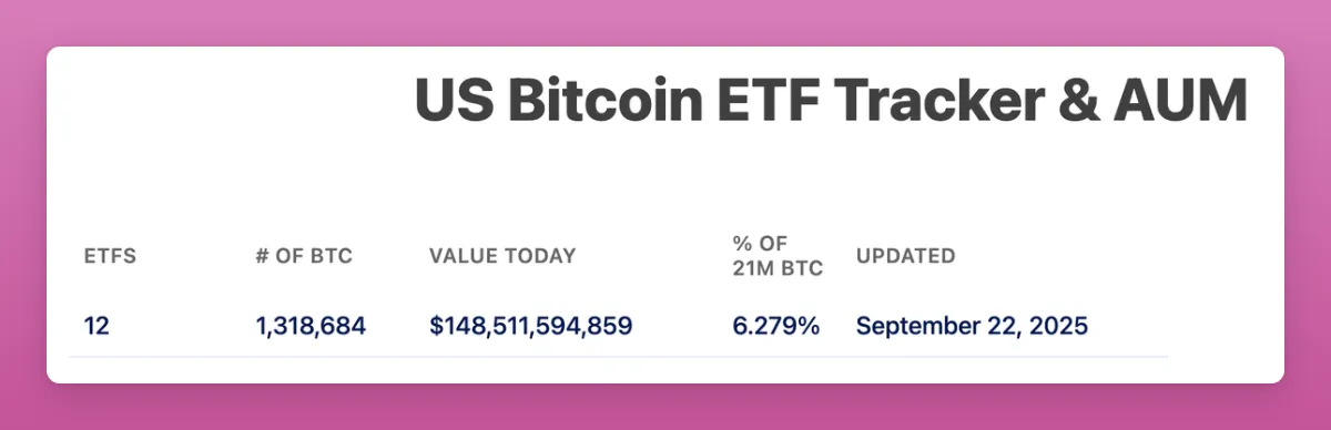 比特币 ETF 持有 1500 亿美元资产管理规模,占总供应量的 6%以上。