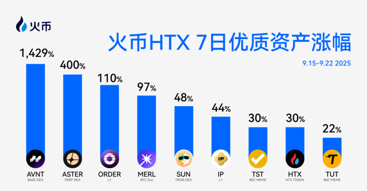 链上牛市来了?火币HTX上新资产一周回顾(9.15-9.22):新币AVNT周涨幅达1429%,链上合约交易所赛道爆发
