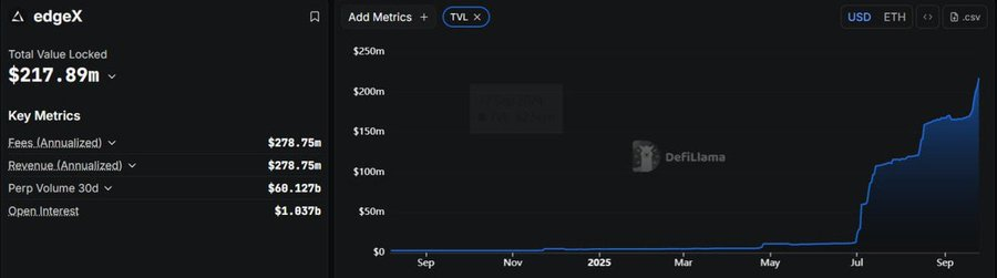 高性能、基于订单簿的永续合约 DEX。未平仓合约超过 10 亿美元,月永续合约交易量达 600 亿美元,年化收入为 2.78 亿美元。其积分计划已上线。