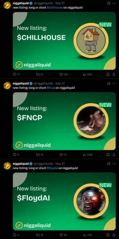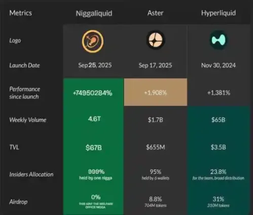 比如 ETH 有 Hyperliquid,币安有 Aster,Solana 有 niggaliquid: