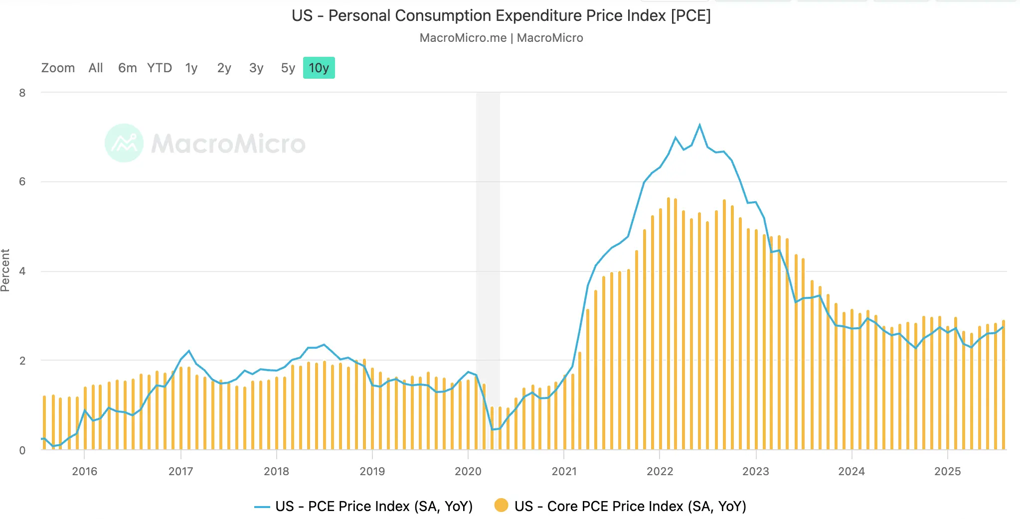 然而,与疲软的就业市场形成鲜明对比的是,通胀压力仍未彻底缓解。8月通胀同比增长2.9%,创今年1月以来最高水平。美联储主席鲍威尔在会后声明中强调,"美国经济面临通胀上升与就业下行的'双向风险'"。这种滞胀特征初现的复杂局面,使美联储的政策选择面临巨大挑战——如果降息"过于激进",可能导致2%的通胀目标无法完成;如果紧缩政策维持过久,则可能导致劳动力市场进一步疲软。