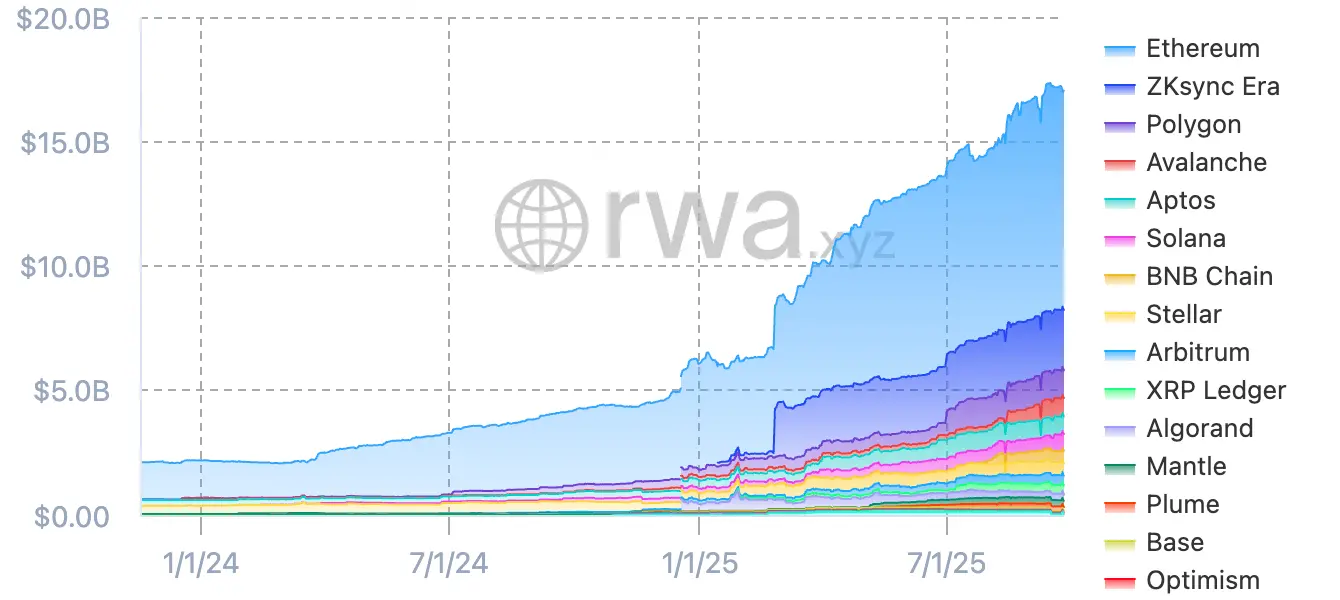 图2. 各公链上代币化资产市值(来自RWA.xyz)
