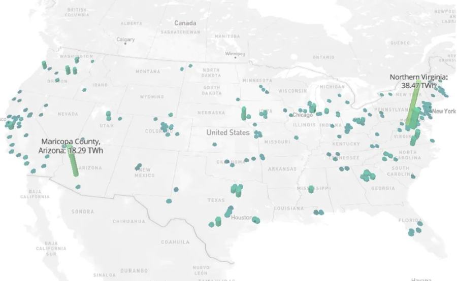 这些被高墙和铁丝网环绕的数据中心,集中分布在美国弗吉尼亚州和亚利桑那州等地,所需的电力和水资源足以媲美整座城市,给当地环境和基础设施带来巨大压力。