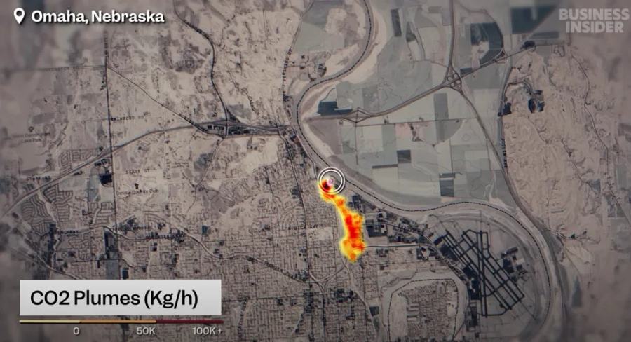 卫星数据显示,北奥马哈发电站在 2023 年 6 月的二氧化碳排放量估算为每小时 30 万千克。