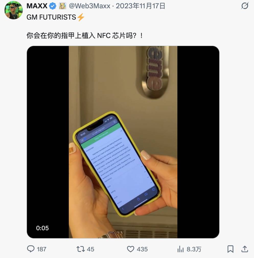 带上 NFC 卡,或者二维码。轻轻一按,他们就能获取你的 X、Telegram 以及所有你想分享的相关信息。
