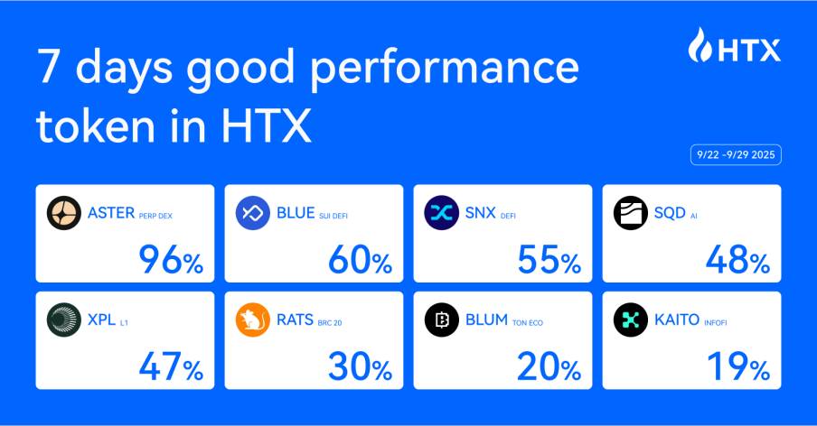 Perp DEX 赛道发力!火币 HTX 上新资产一周回顾(9.22-9.29):多赛道普涨,新币 ASTER 周涨幅 96% 领跑