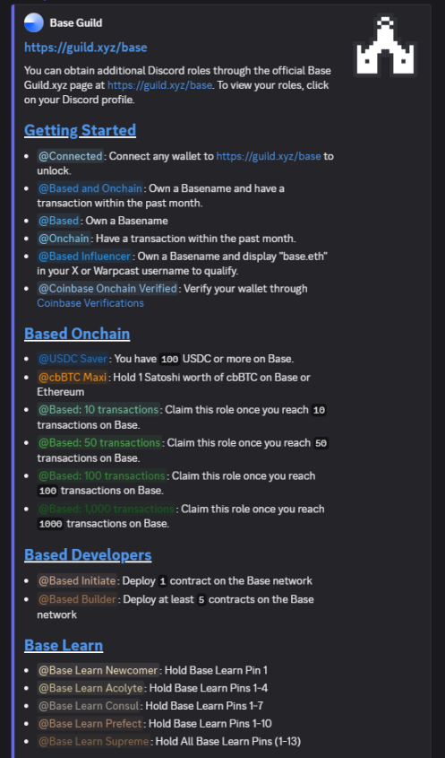 Base 社区 Discord 服务器上获得的角色可用于衡量用户的一致性和承诺,并与个人的 BASE 空投分配挂钩。