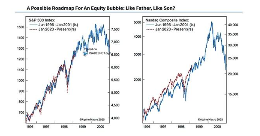 正如RealInvestmentAdvice.com的文章所分析,每个泡沫的核心都有一个故事。1999年的故事是互联网,而2025年的故事则是人工智能,两者都带来了重塑产业、引爆生产力的巨大想象空间。