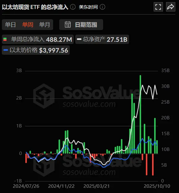 美国以太坊现货 ETF 净流入 4.88 亿美元