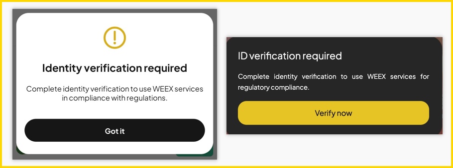 为持续提升平台的安全性、合规性及整体交易体验,WEEX 将全面强化账户身份验证(KYC,Know Your Customer)机制。根据最新的合规要求与风险控制策略,若未完成身份验证,将无法继续使用部分或全部平台服务。