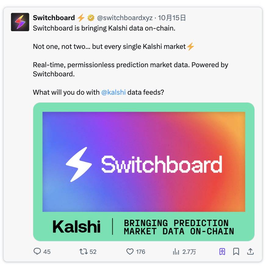 Switchboard:@switchboardxyz 预言机也宣布支持并集成 Kalshi 的数据。