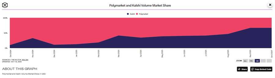 这种策略不仅帮助 Kalshi 将其影响力扩展到自身平台之外,还帮助其保持受监管地位,这正是其与主要链上竞争对手@Polymarket 的关键区别。