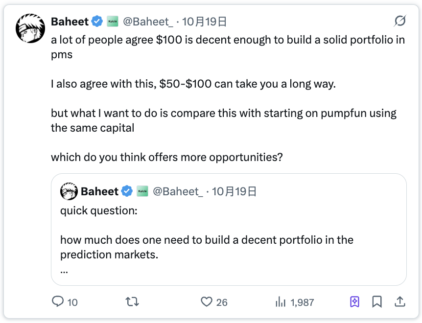 100 美金勇闯预测市场和 Meme,哪一种机会更大?